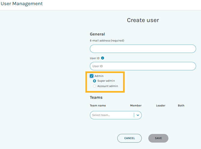 - If you create an Account administrator, this user can only see the results of his/her own team, but not company-wide analyses.